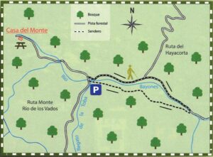 Desde el pueblo de Ucieda, una carretera nos lleva hasta el Parque Natural Saja Besaya. Una vez llegamos al área recreativa de la Casa del Monte, continuamos hasta un pequeño puente donde se bifurcan la Ruta de Hayacorva (PR-S 112) y la Ruta de los Puentes (PR-S 111). Cruzamos el puente a nuestra derecha. Allí encontraremos un pequeño aparcamiento y el cartel que nos indica el comienzo del “Sendero Adaptado para Invidentes del Río Bayones”.